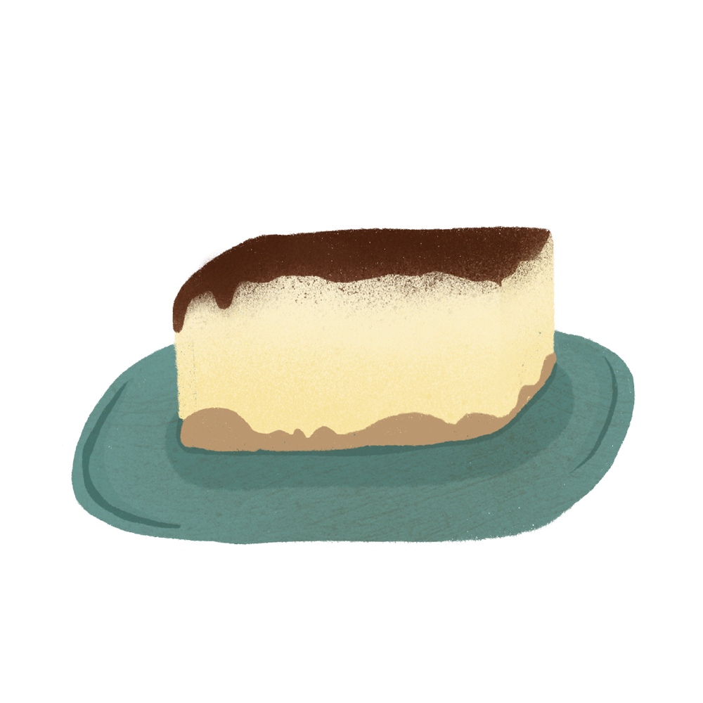 提拉米蘇提拉米蘇雖是最廣為人知的義大利甜點,家家戶戶的配方卻不盡相同,總能體現一家店的特色。我們將大部分的酒香藏在沙巴雍裡,再由馬斯卡邦與沙巴雍組成細緻如絲網的質地,搭在浸潤了灈縮咖啡液與酒的手指餅乾。最後刨上富煙燻果乾風味的巴布新幾內亞黑巧克力與柔順白巧克力,層層堆疊,齒頰留香。